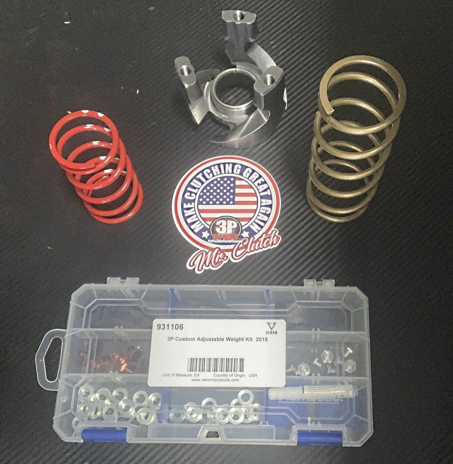 Exclusive 3P clutch kit for the new P90X Ranger 1000 clutch systems! We change the internal components of your stock clutches to maximize performance in whatever application you have. You just tell use your riding style, modifications and we set up your custom package. Unmatched low end torque (belt grip) Low rpm engagement at 14-1500rpm Instant throttle response better backshifting during load changes We have our kits in race applications from the Baja 1000, Best in the Desert, Southern Rock Racing, TORN, LACC, CMR Mud Racing, etc along with countless trail applications. It doesn't matter what size tires or terrain, we will match your kit to fit your needs. It's all about calibrating for the application!! Includes adjustable flyweights, primary spring and secondary spring*